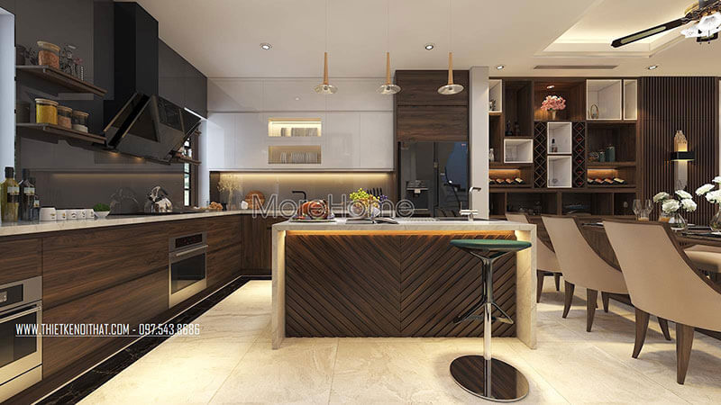 Thiết kế nội thất phòng bếp biệt thự phong cách hiện đại, trẻ trung và tiện nghi