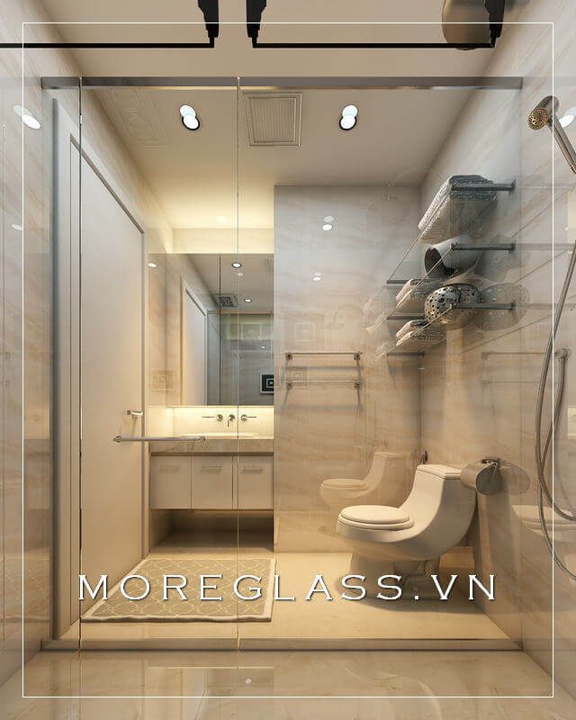 Mẫu thiết kế nhà tắm đầy đủ tiện nghi, bao gồm phòng tắm kính cường lực cao cấp, đã được hiển thị.