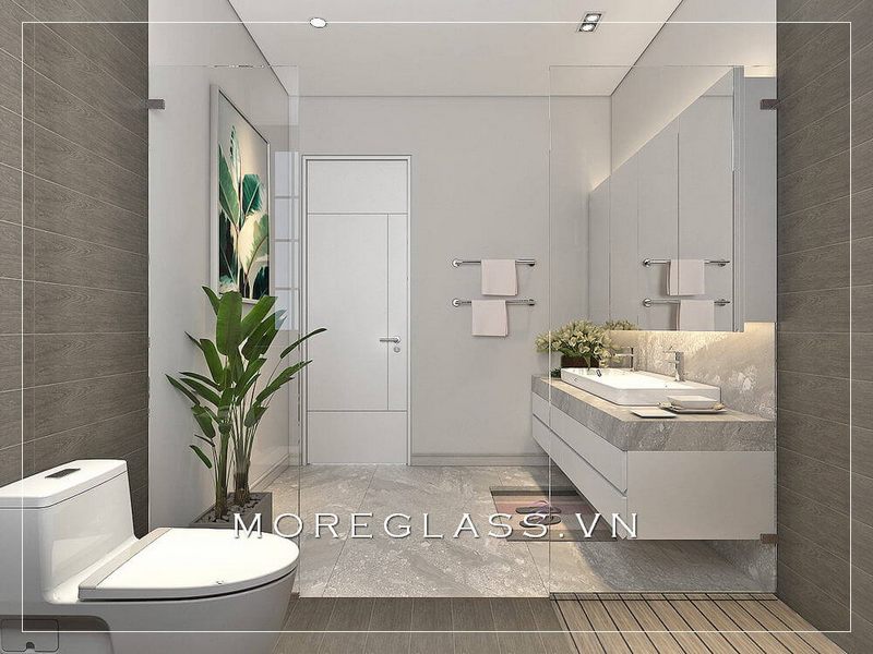 Gương kính cũng là một loại vật liệu cao cấp quan trọng trong thiết kế nhà tắm. Gương không chỉ là một công cụ hữu ích để kiểm tra diện mạo của bạn, mà nó còn có thể làm cho không gian trở nên rộng rãi và lấy ánh sáng tự nhiên vào phòng tắm. Sử dụng gương kính trong các thành ngăn hoặc bức vách phía sau bồn tắm sẽ mang lại hiệu ứng độc đáo và góp phần làm nổi bật không gian nhà tắm của bạn.